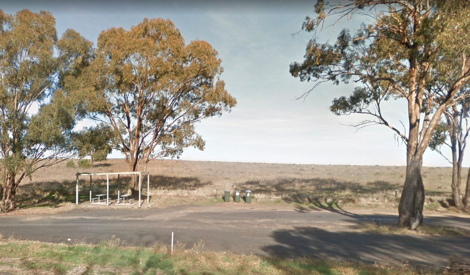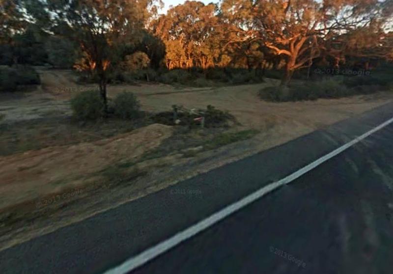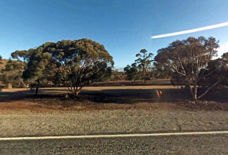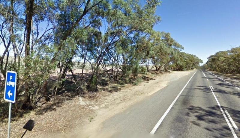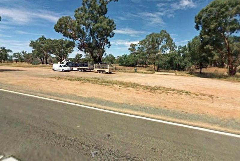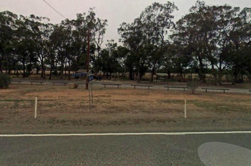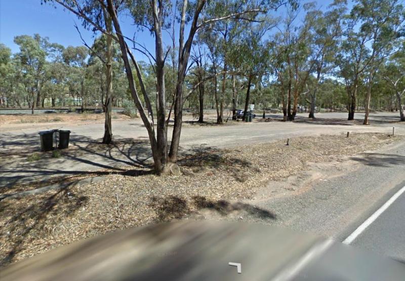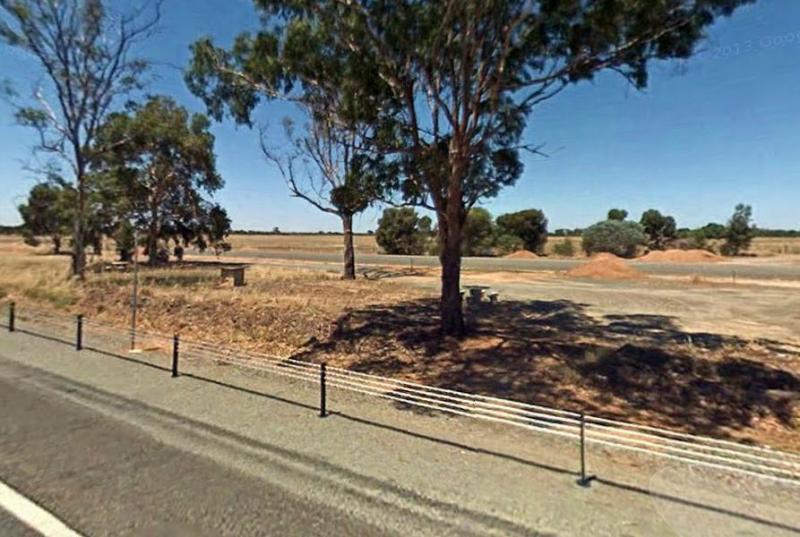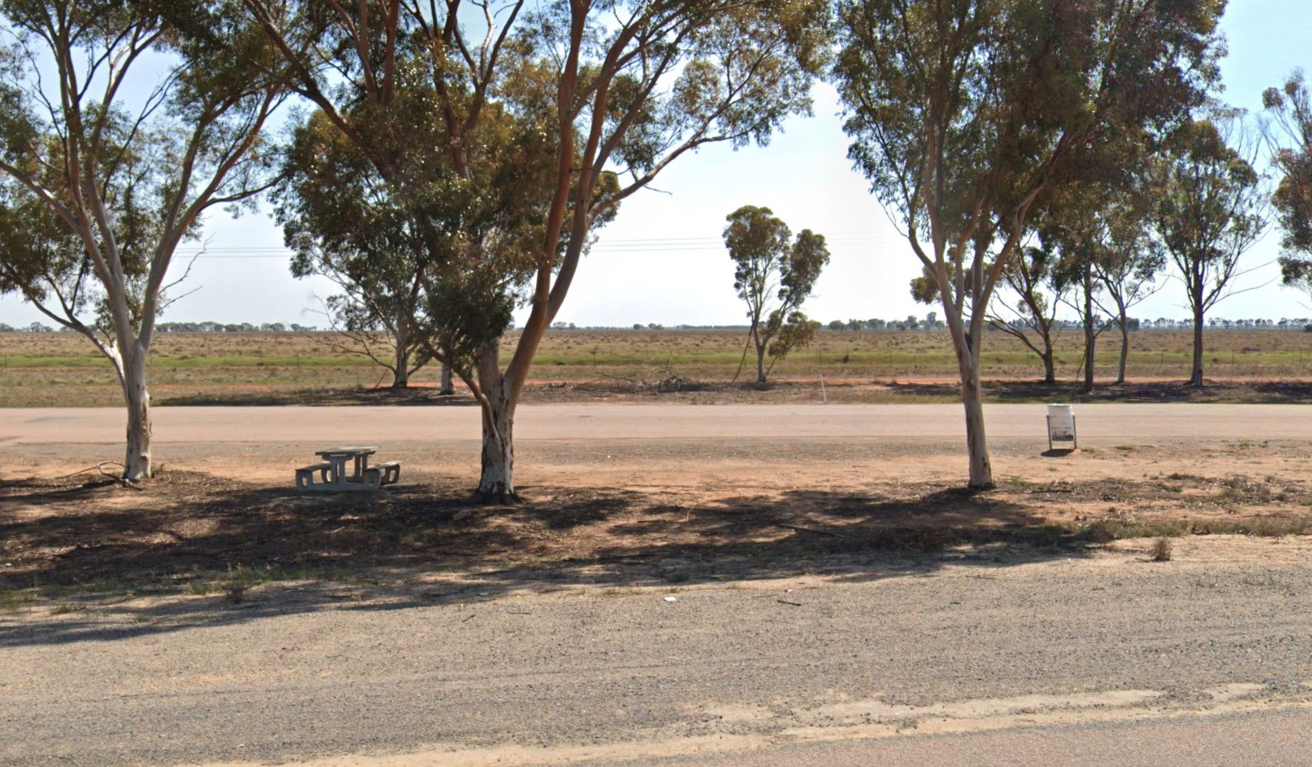The Yamba East Rest Area is on both sides of the Sturt Highway, there some rubbish bins and small shade trees.
