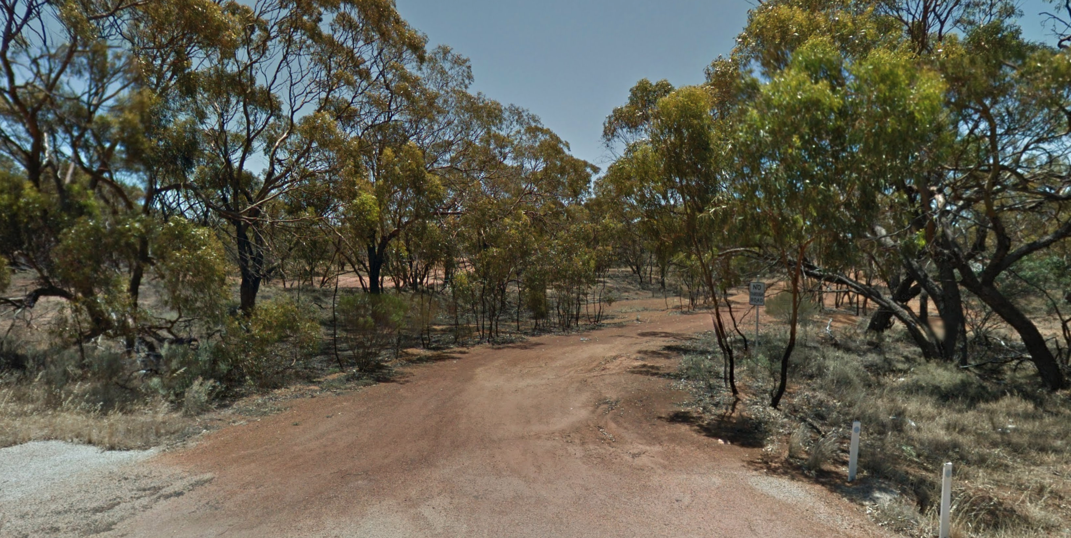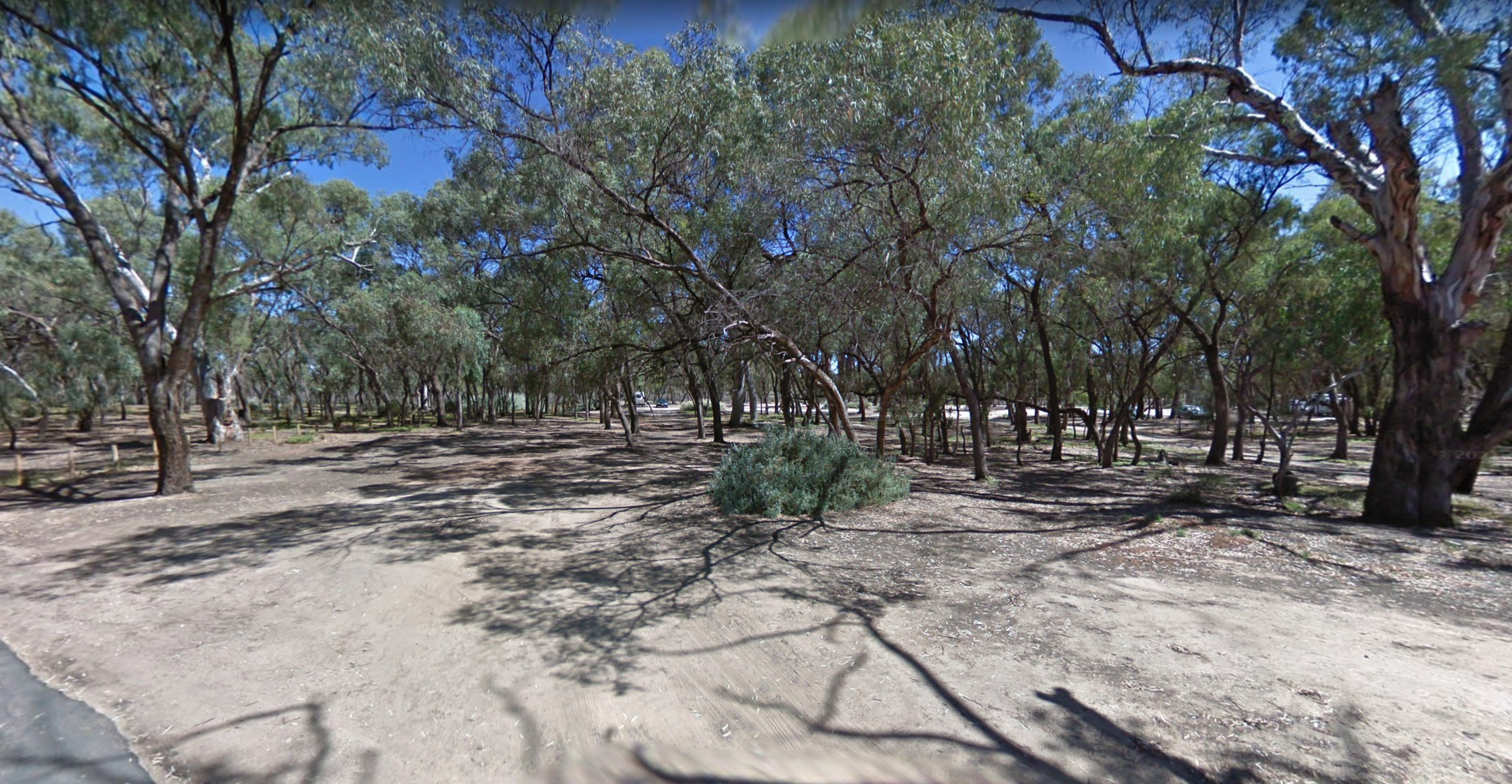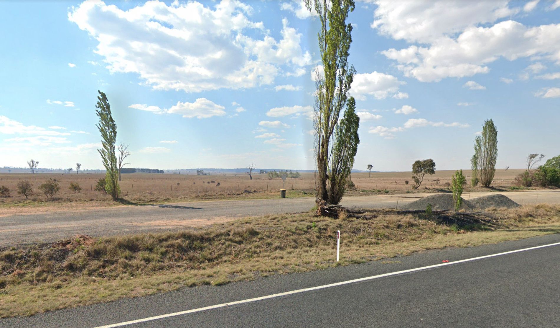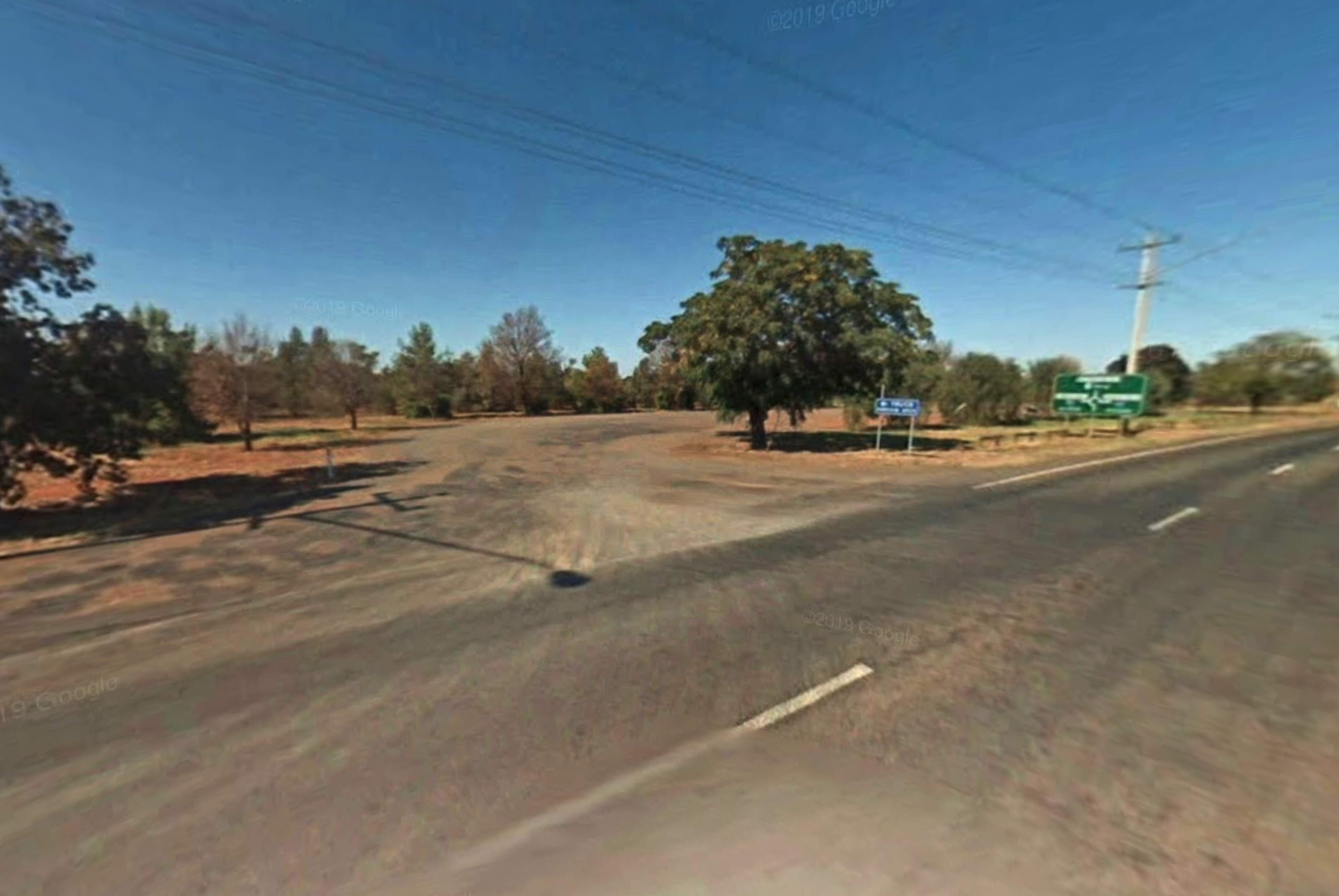 The Yamba East Rest Area is on both sides of the Sturt Highway, there some rubbish bins and small shade trees.