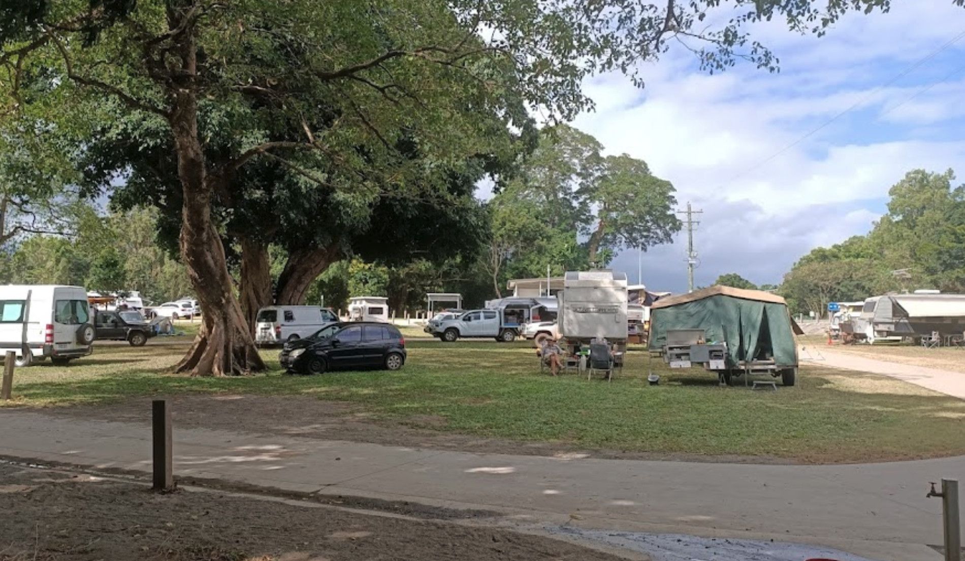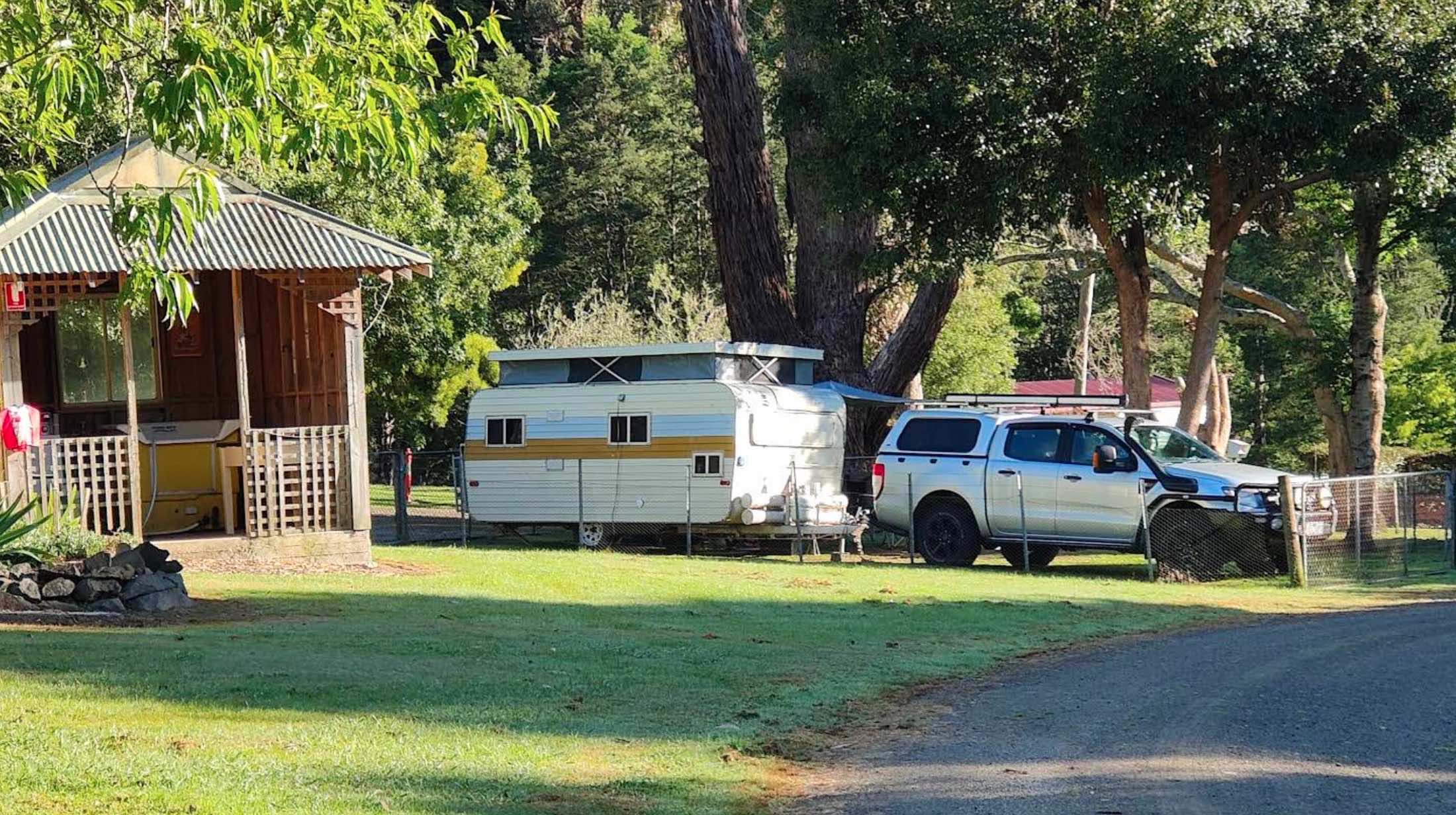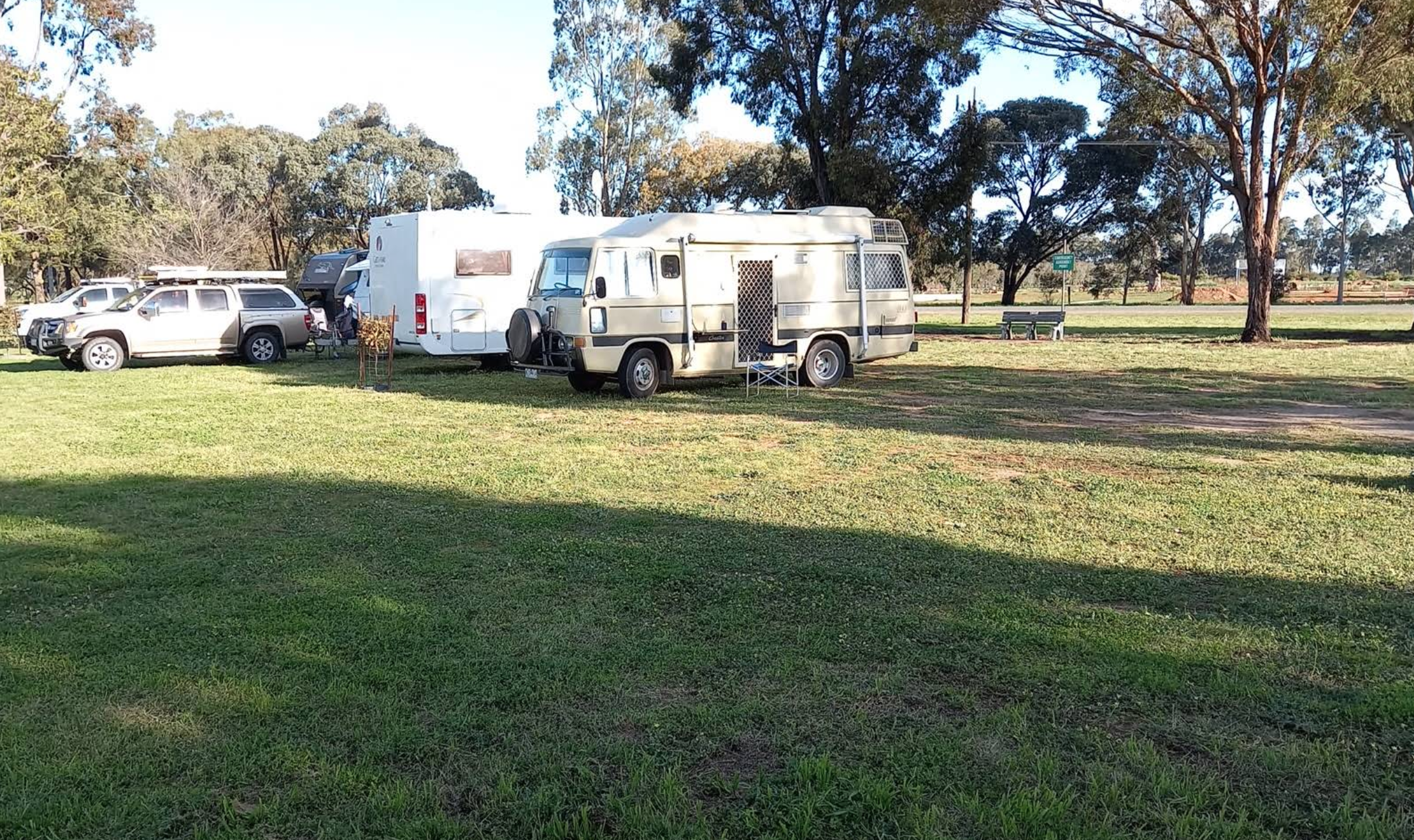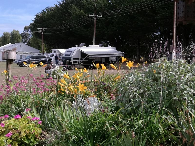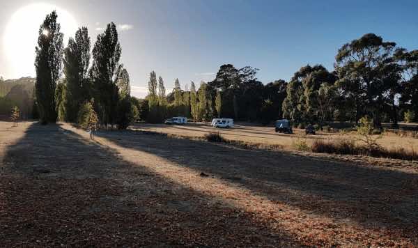 This is an inexpensive place to stay, power is available, a camp kitchen plus you can get a hot shower. When pitching a tent or awning ropes take note that the ground is hard so you need strong pegs and a good hammer.