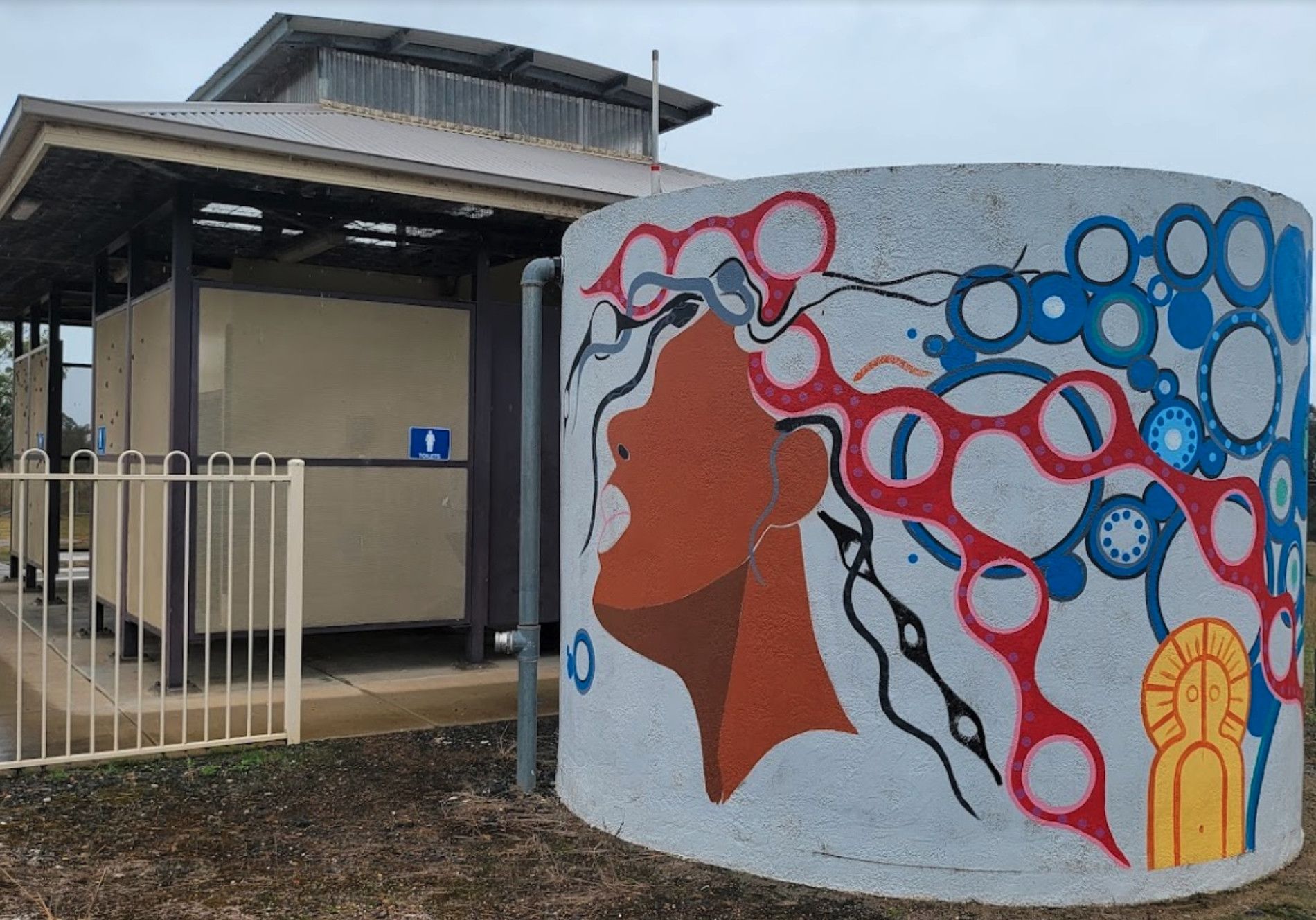 The Abbotts Tank Rest Area has undercover picnic tables and wood fired bbq and some rubbish bins and a few trees for shade. So take break from driving and grab a bite to eat and chill out for a bit.