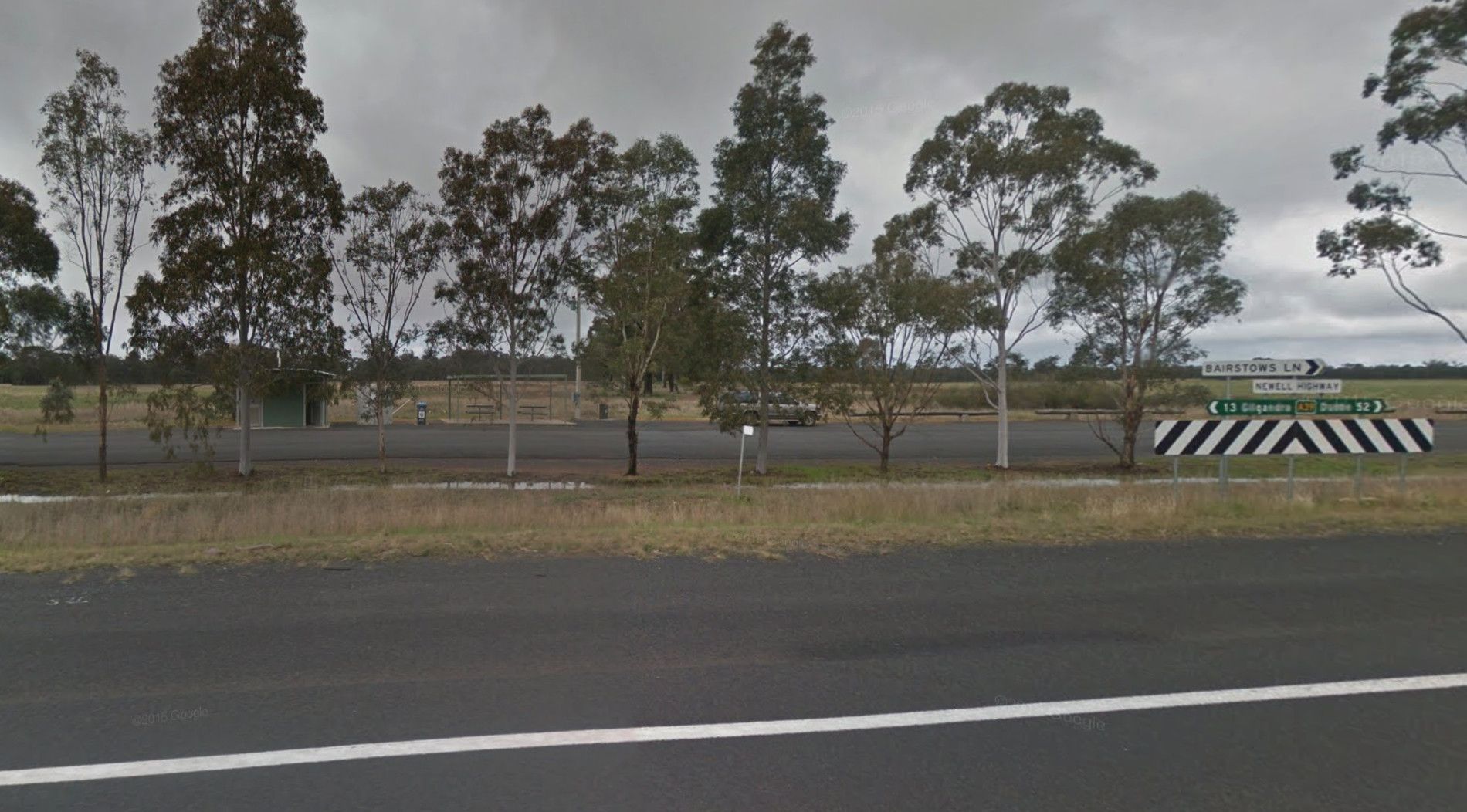 The Warialda Creek Rest Area has a few trees and birds to keep you company, and not much else at this location.