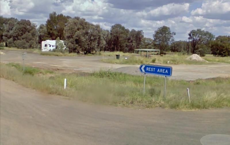 At the Yalcogrin Rest Area you can get mobile phone reception, and the site is just off the Newell Highway with an undercover picnic table and a couple of rubbish bins and not much shade for you caravan.